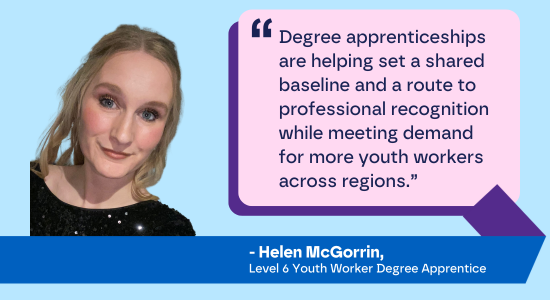 To find out more about either the Level 3 or Level 6 Youth Work course, our dedicated Apprenticeship Officer can support. We can provide guidance on the administrative side to help you get set up and can connect you with training providers. Email our Apprenticeship Officer.